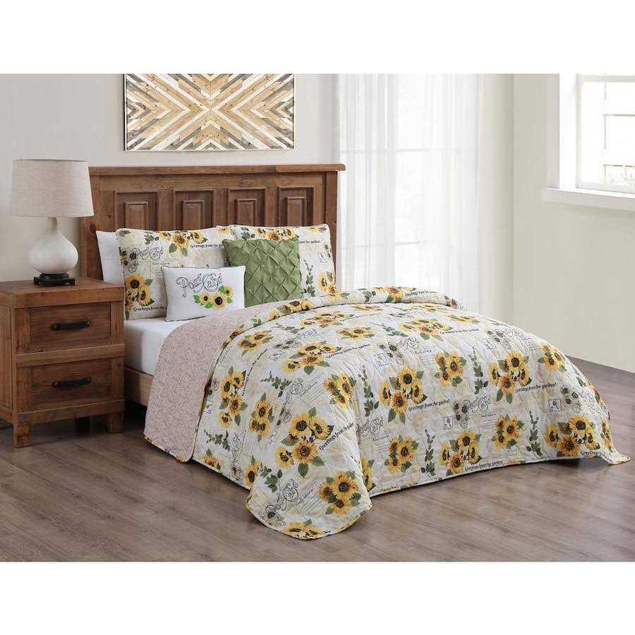 - Includes quilt, 2 shams, and 2 decorative pillows