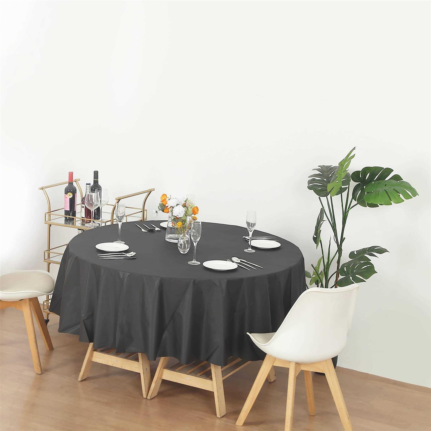 Evershine (12-Pack) Heavy Duty Plastic Table Covers Tablecloth (Reusable) (Round 84″, Black)