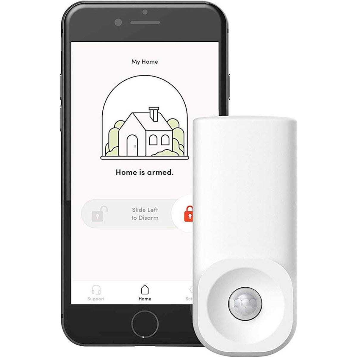Install this Kangaroo motion sensor and receive alerts on your phone when there’s activity in your home. The required app is free, and you can adjust the settings to alert emergency services. This Kangaroo motion sensor is a small white device with a modern look that works with a variety of decor styles. Instant mobile alerts You can get alerts on your phone and tablet when motion is detected in your house or apartment. 15′ detection range Kangaroo detects motion from up to 15′ away, allowing you to know when there’s someone else in your home. 120° field of view This motion sensor features a wide viewing angle. Battery-powered design Enjoy up to 1 year of battery life. Built-in pet rejection The motion sensor does not react on pets up to 2′ 4′′ tall. Easy installation Kangaroo simply mounts to room corners or flat walls with no tools or professional installation required.