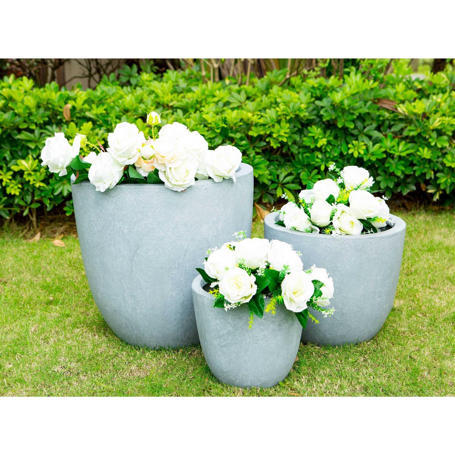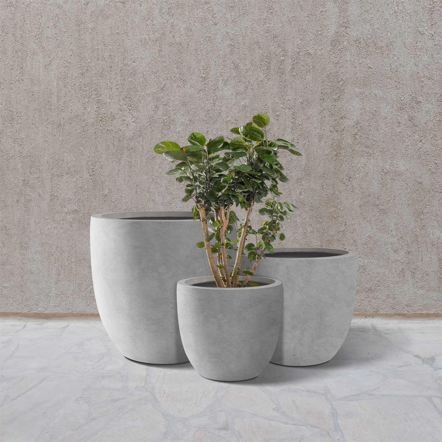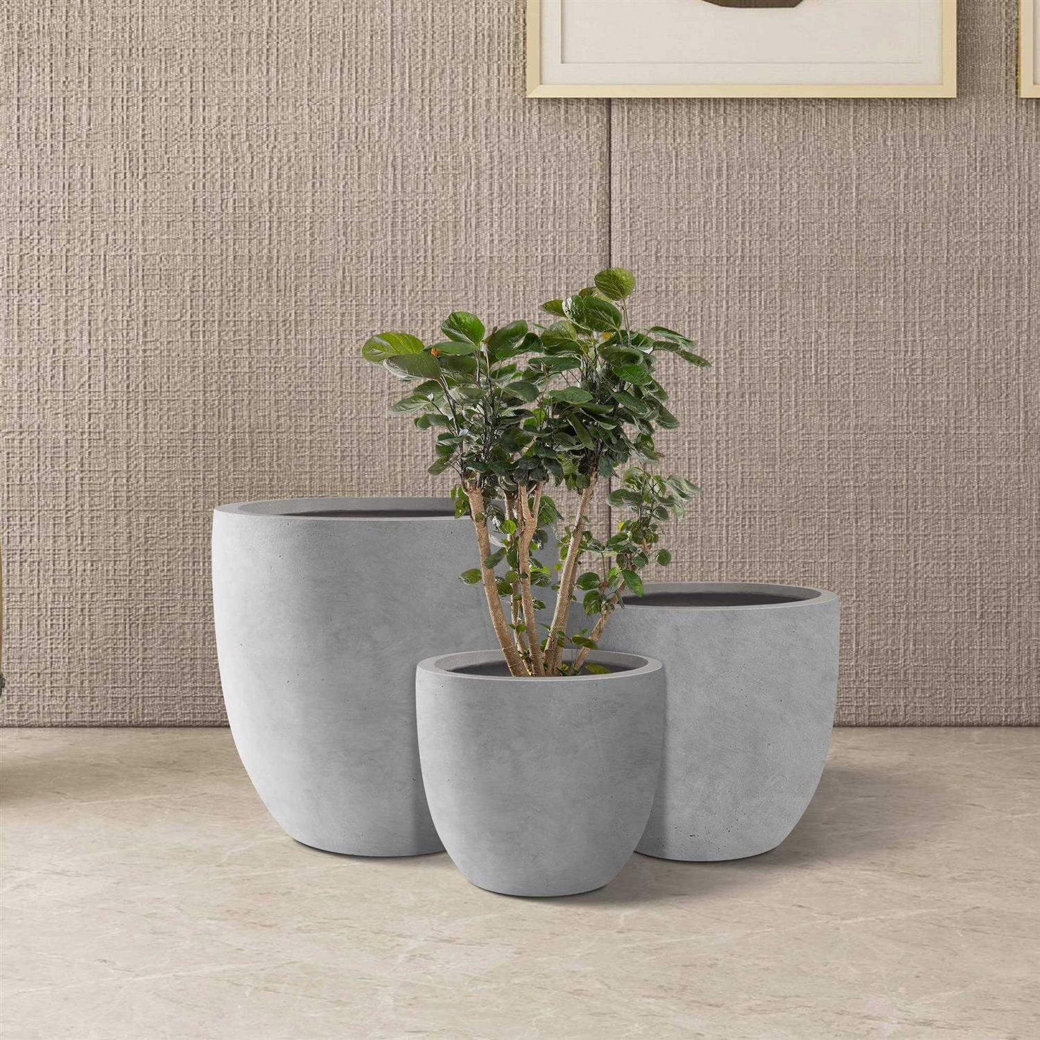 Kante 18″, 14″, and 10″W Natural Concrete Round Set of 3, Outdoor Indoor Modern Planter Pots, Lightweight w/ Drainage Hole