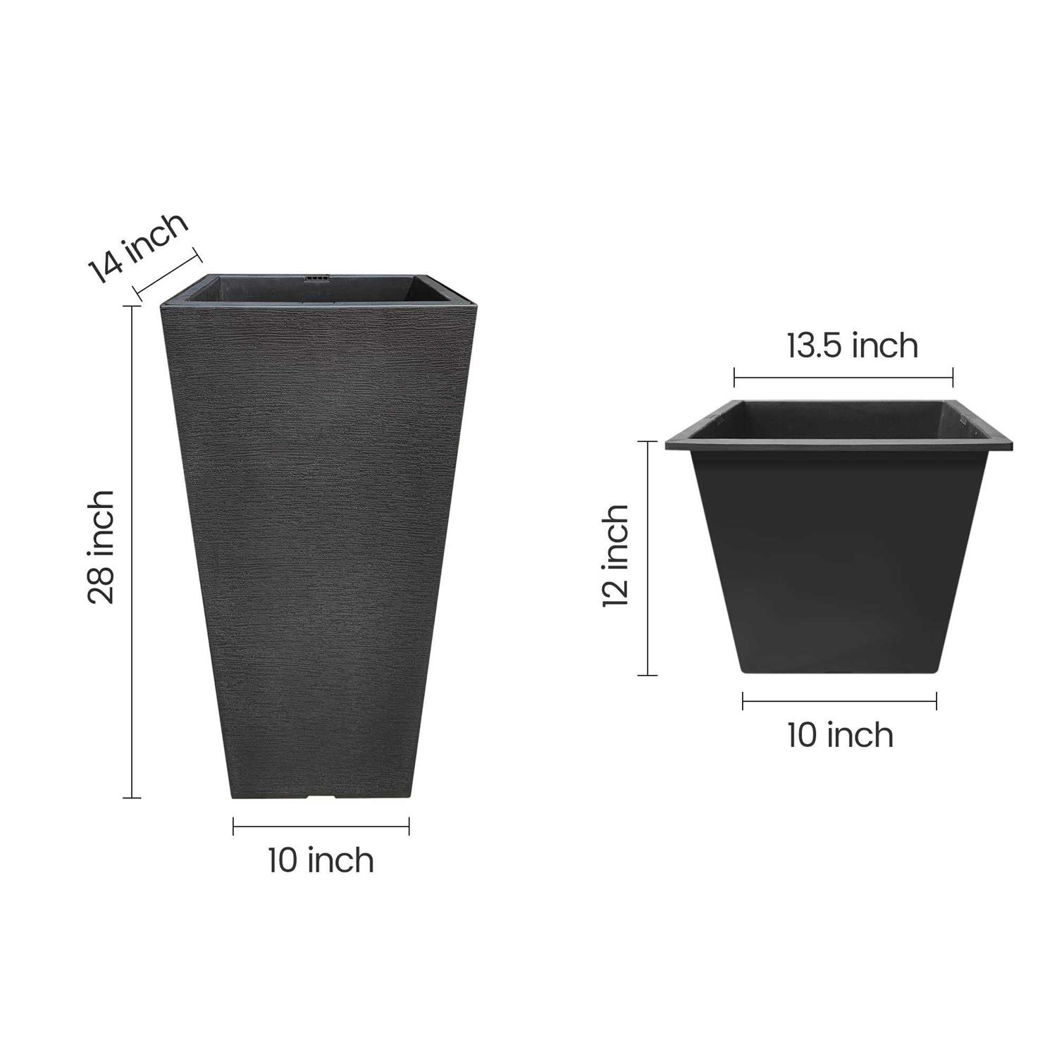 Kante 28 inch Tall Planter Set of 2, Large Taper Planter for Outdoor Indoor Garden Patio Front Door (Black)
