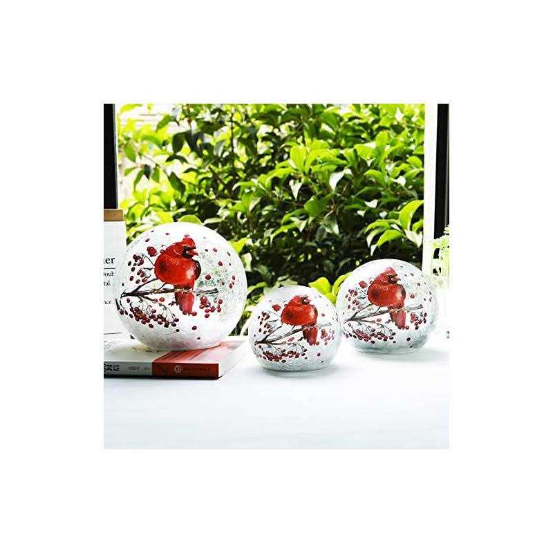 Kaowod Crackle Glass Ball Cardinal Lamp Light Up Red Cardinal Stained Glass Christmas Decor Accent Lamp