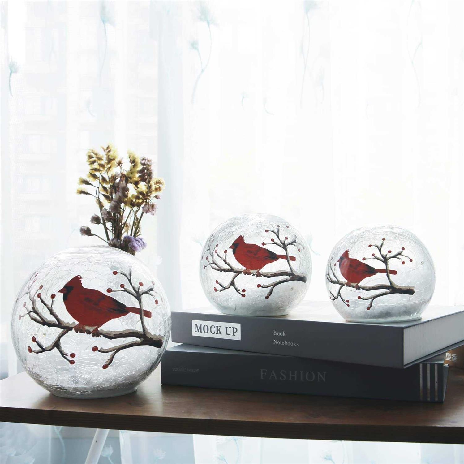 kaowod Large Crackle Glass Ball Cardinal Lamp Light Up Red Cardinal Stained Glass Christmas Decor Accent Lamp