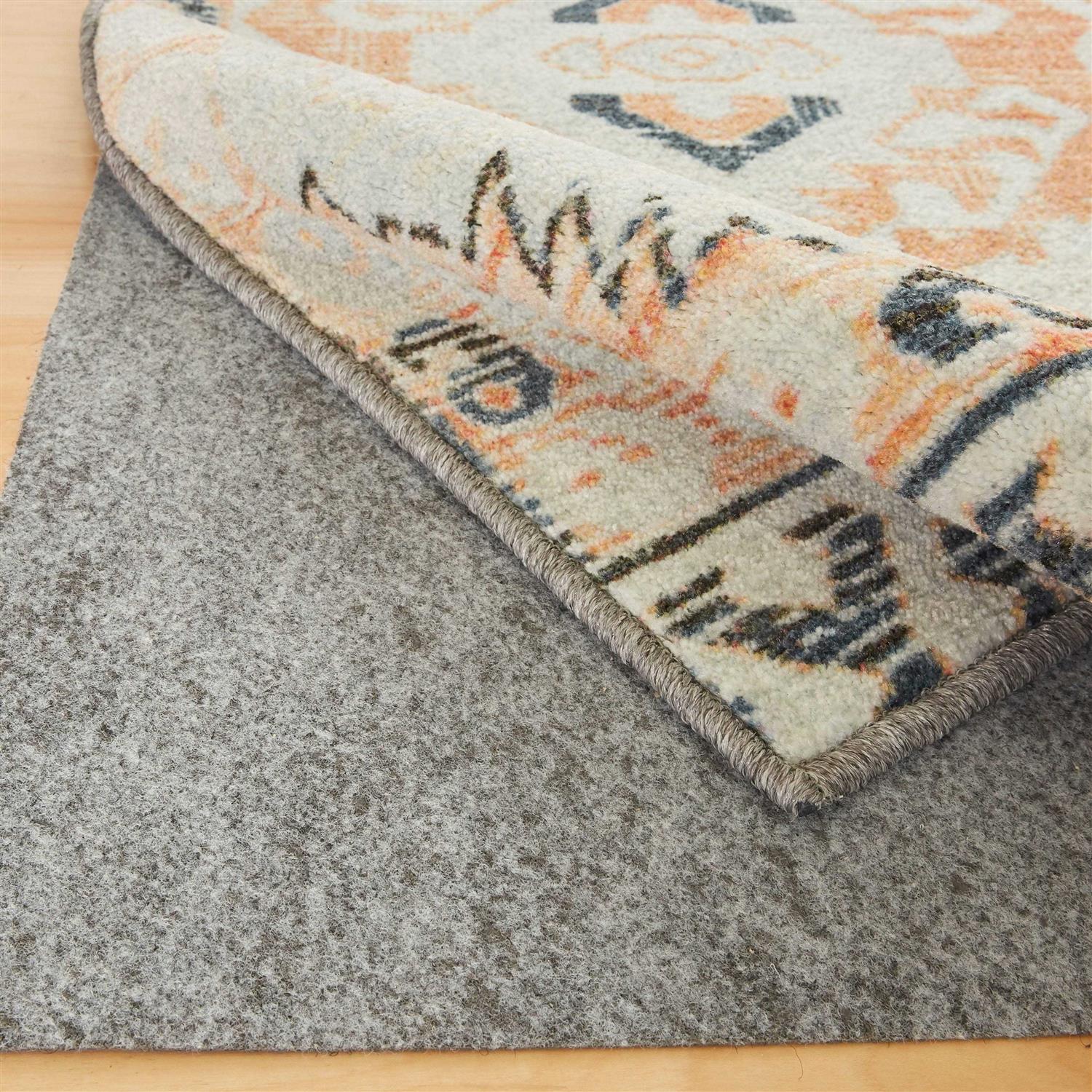 Youve found the perfect area rug to tie your ensemble together, but before you roll it out, be sure to set down this thin and versatile rug pad first! Crafted from blended felt materials, this thin 1/8″ rug pad is built to last and gives your rug a softer feel underfoot without added bulk! Essential for all floor types, these durable rug pads with latex rubber backing protects your floors from scratches, punctures, and furniture indentations. Also helping to prevent bunching and wrinkling, as well as slipping and sliding in high traffic areas. This rug pad is available in variety of sizes and features easy-to-size functionality so you can simply cut with scissors for a customized fit. For easy care and clean simply spot clean with a solution of mild detergent and water or clean professionally. Do not machine wash.