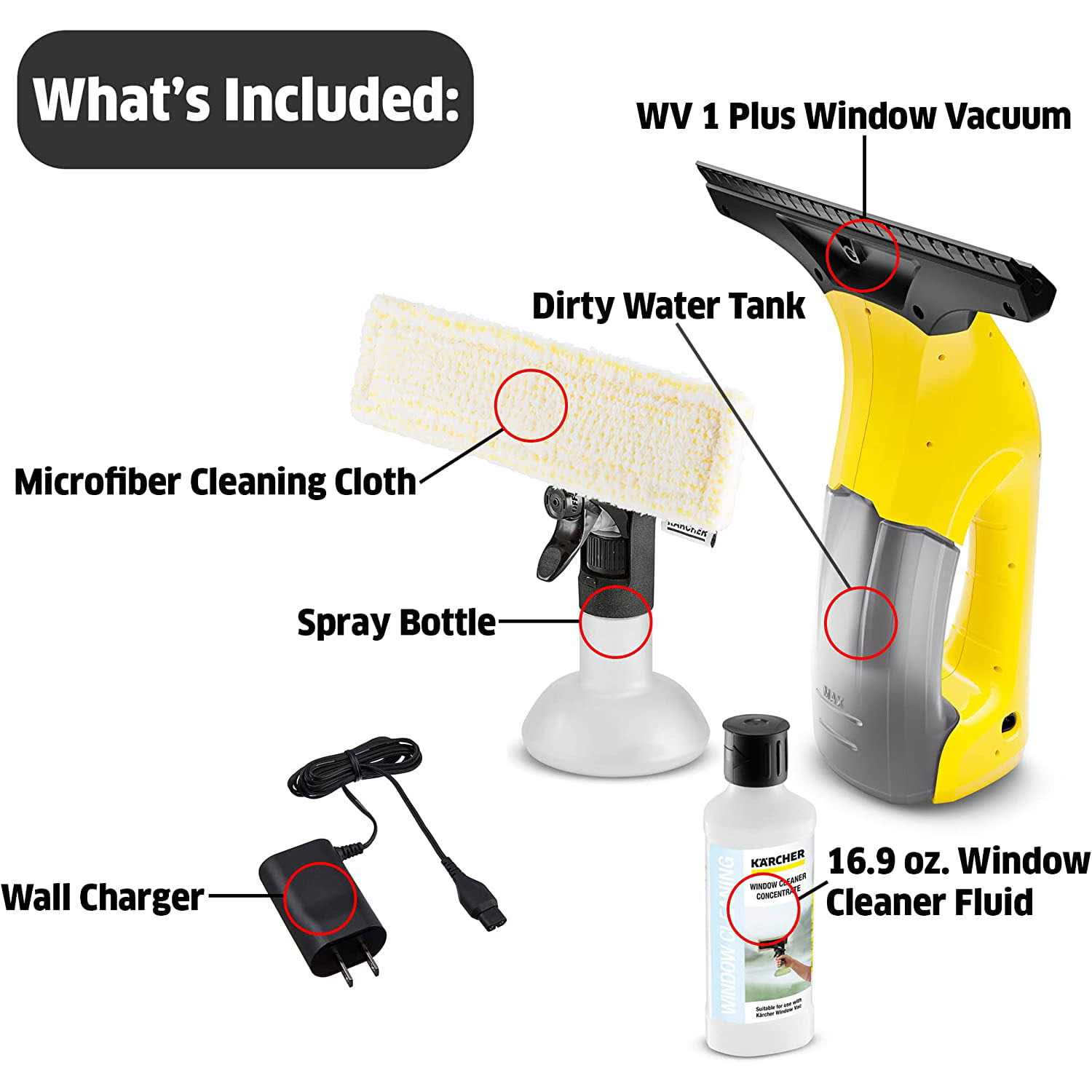The WV1 (Plus) Surface Cleaner provides fast, drip-free, streak-free cleaning. Lightweight at 1.1 lbs, the WV1 eliminates paper towels and cleans any smooth surface in the home. Great for windows, mirrors, shower tile and doors, countertops, and vehicles. Includes Window Vac and spray bottle with washable microfiber pad. Karcher