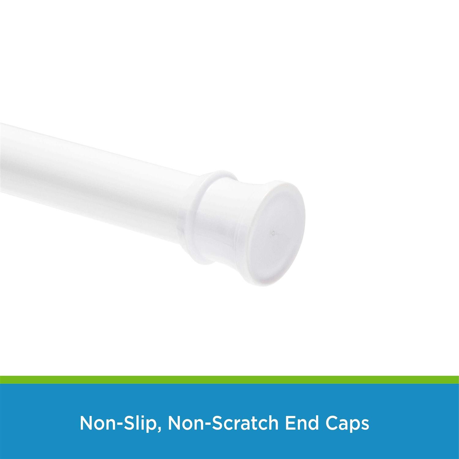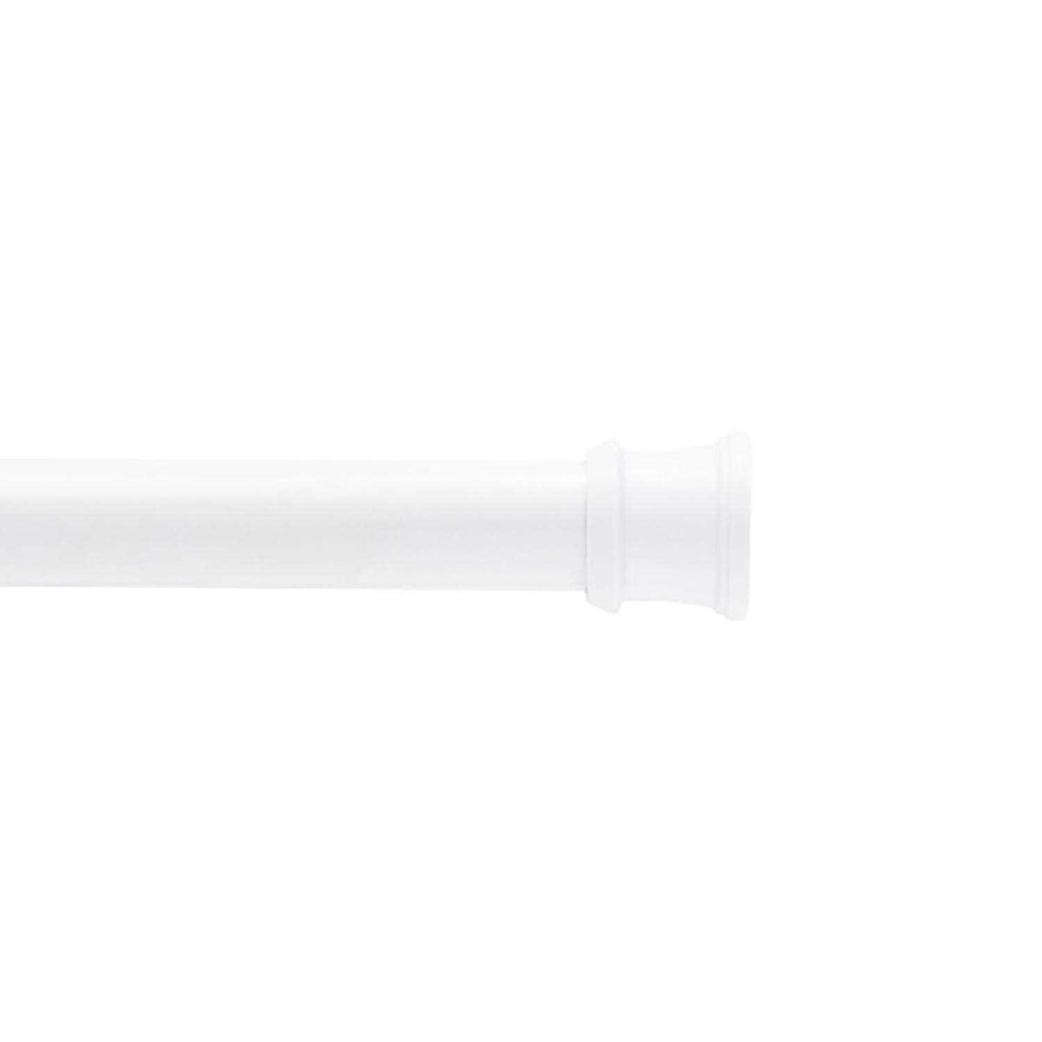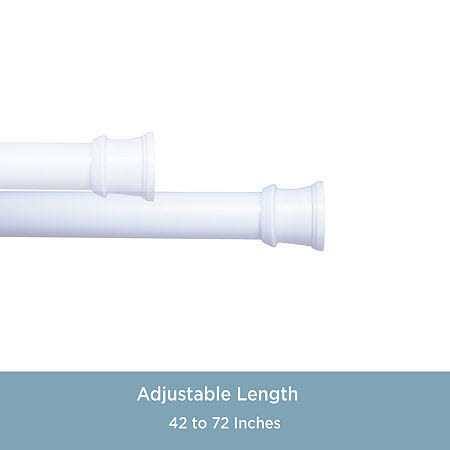 The Kenney Twist & Fit No Tools Tension Shower Curtain Rod in white is adjustable from 42-72” wide to fit standard and oversized bath tub openings
