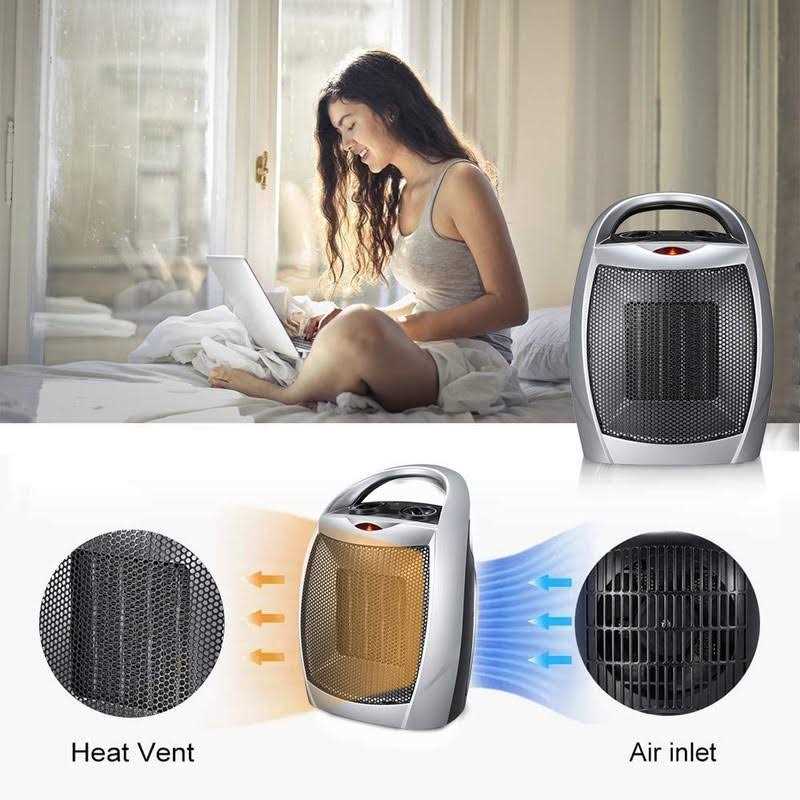 Kismile Small Ceramic Space Heater Electric Portable Fan with Silver