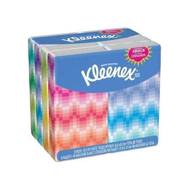 Kleenex 3-Ply Pocket Packs Facial Tissues – 8 packs, 10 sheets each
