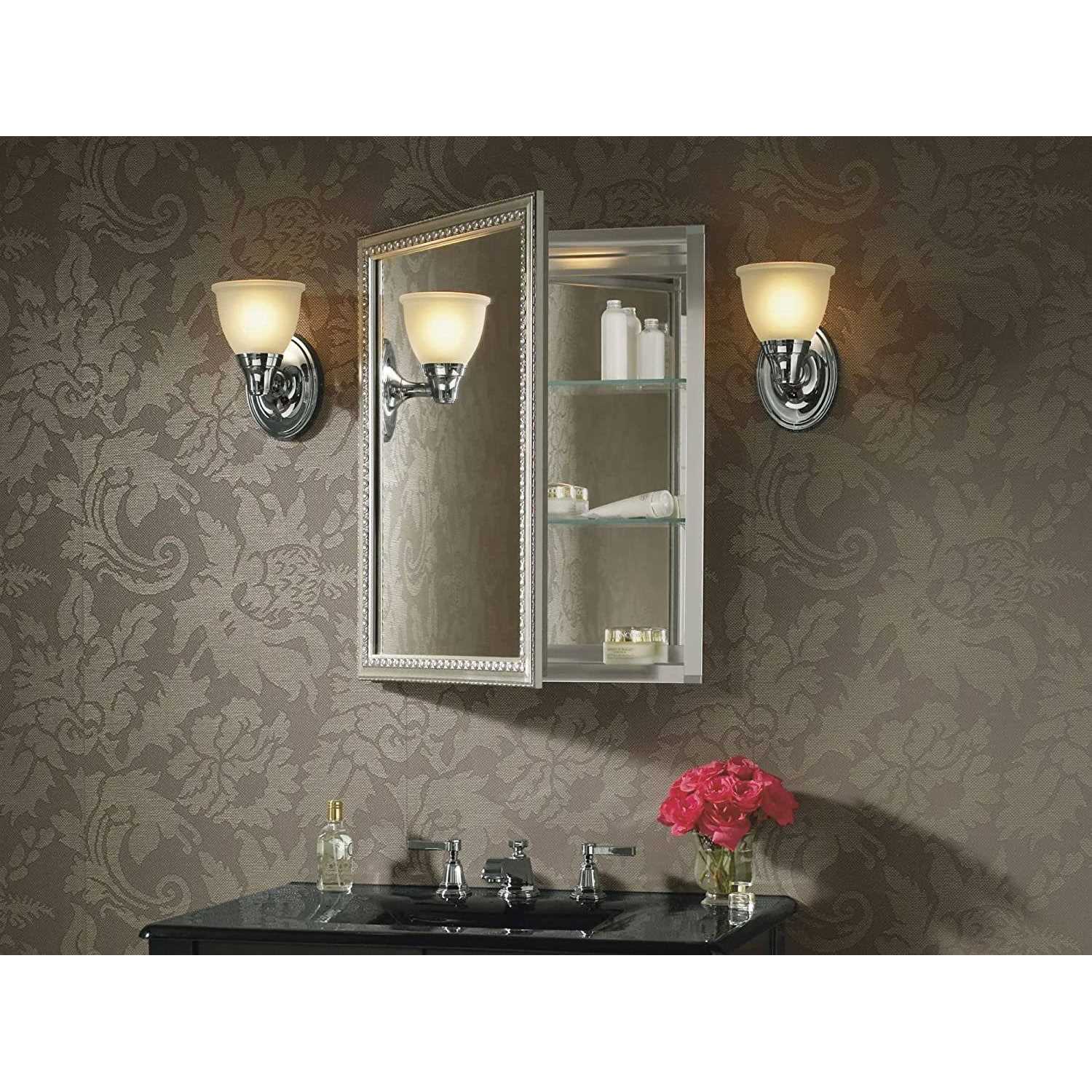 Kohler K-CB-CLW2026SS 20 x 26 in. Aluminum Single-Door Medicine Cabinet with Decorative Silver Framed Mirrored Door