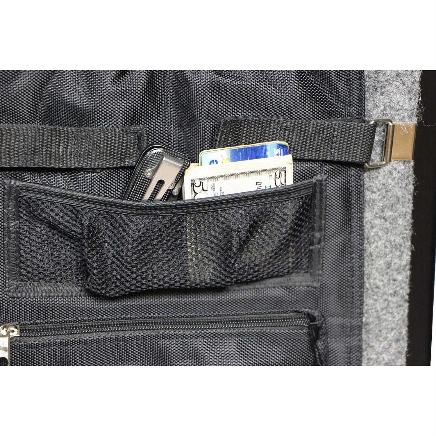 The gun safe accessory door panel system model 12 has 4 quick draw holsters document storage zip pockets. It s an excellent space saver for your gun safe because it attaches to the inside of any fabric covered door expands the storage in your gun security safe instantly. The accessory panel attaches to the fabric covered door panel on your safe with the included mounting brackets the panel measures 10-In. wide by 40-In. top to bottom and can fit on a safe door panel measuring no wider than 12-In. It can hold up to 40-Lbs. 4 pistol pockets Cool Pocket offers fire protector for documents Zip pockets for jewelry valuables Easy clip system for simple install Additional discounts apply for this item when purchased as Bulk.