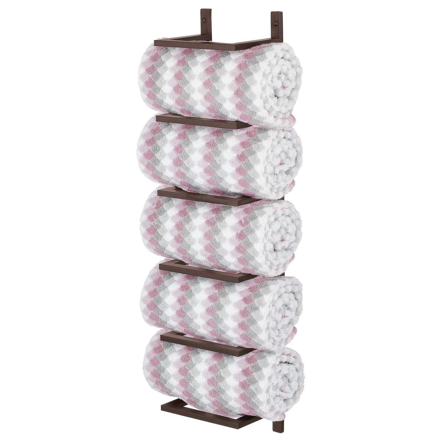 mDesign Metal 5-Tier Wall Mount Towel Rack Holder and Storage Organizer – Bronze