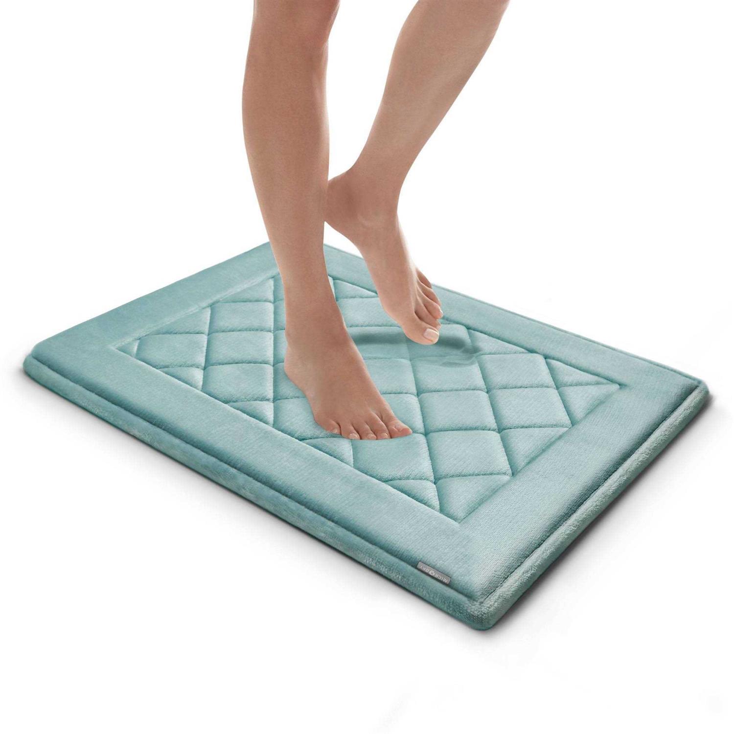17″x24″ SoftLux Extra Thick Charcoal Infused Diamond Memory Foam Runner Bath Mat Aqua – Microdry