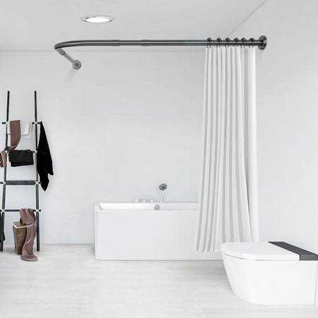 Misounda Corner Shower Rod Adjustable L Shaped Shower Curtain Rod Drilling Install Stainless Steel Curved Shower Rods 27.6-39.443.3-67 inch With 24 Shower