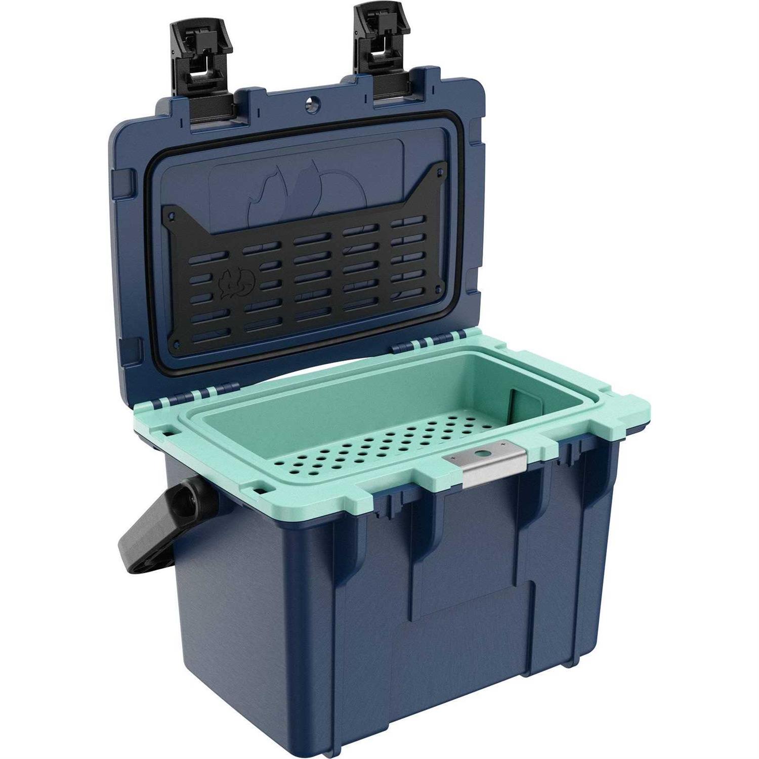 The Pelican 14 Quart Personal Cooler is versatile so you can pack everything you need into your weekend. The commercial-grade 1.5” thick polyurethane walls and a freezer gasketed lid are designed to hold onto the cold no mater how far you go. The bottom section stores ice and drinks. With enough room to keep a six-pack frosty, your pre-party starts here. It’s specifically designed to accommodate two 1-lb. Pelican Ice Packs (sold separately) at the same time for the best ice retention possible. Use the inner tray to keep food cold and dry, and the snap in flexible lid organizer for dry snacks. To top it all off, there’s an extra storage area for keys and other gear under the cup holder, with an easel slot for your phone or tablet. Beneath the stainless-steel bottle opener is a hidden magnet to catch the bottle cap. This one’s to the engineers who sweat the details: on the back of the cooler is a concave cut-out forming a smooth area against your leg, plus the rugged handle locks upright to make carrying the Pelican 14 Quart Personal Cooler a pleasure.