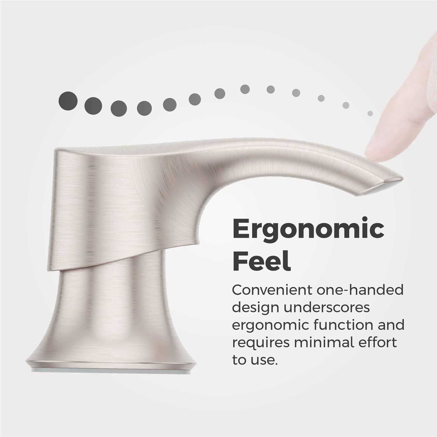 Pfister KSD-KEM SoloTilt Deck Mounted Soap Dispenser with 16 oz Capacity SoloTilt soap dispensers feature a forward tilting pump head that lets you dispense soap with the flick of your thumb. A dirty dish in one hand, sponge in the other? No problem. SoloTilt has you covered.