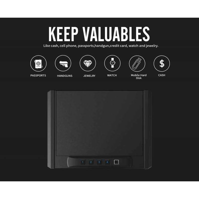 Ensure the ultimate safety of your favorite expensive items and important personal documents in your home or office. The RPNB Multifunctional Quick-Access Safe is designed to hold and protect your small firearms, money, jewelry, and any of your other valuables. By the touch of your own fingerprint, this personal safe allows for an easy and immediate entry to your valuable belongings. Equipped with a 4-digit electronic keypad, you can also customize a 4 to 6 digit code to grant you access inside. With a spring-loaded door, you’ll be able to get into the safe quickly when it matters most. Constructed with a double layer of steel, this multi-functional safe features a protective foam interior and a shock-proof carrying handle that will provide long-lasting strength and dependability. Built with pre-drilled holes and included mounting hardware, you can store this reliable safe securely on a wall, to the floor, or in a drawer. For high-quality protection of your essentials, add the Quick-Access Safe from RPNB Safe into your home or office.