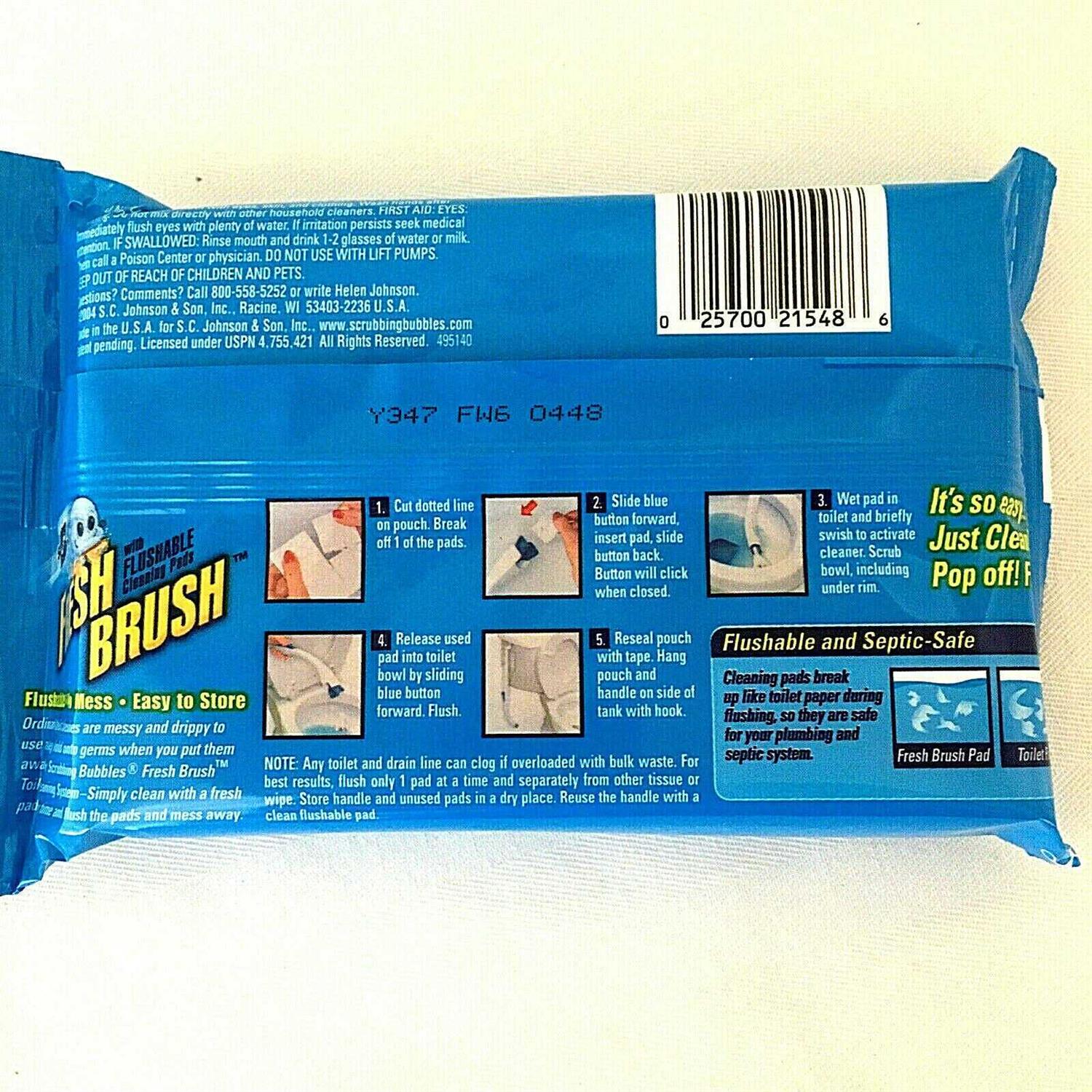 When you’ve got the right product for the situation at hand, even the most overwhelming tasks become . . . well, a lot less overwhelming. Cleaning becomes simple, rewarding — and more manageable. Suddenly everything’s under control.Scrubbing Bubbles Fresh Brush is the only system with both heavy duty pads and flushable pads 4-in-1 Cleaning Power: Eliminates odor Removes limescale Cleans under the rim Cleans below the water When you’ve got the right product for the situation at hand, even the most overwhelming tasks become . . . well, a lot less overwhelming. Cleaning becomes simple, rewarding — and more manageable. Suddenly everything’s under control.Our Fresh Brush Flushables help remove stains, provide a great Citrus Action scent and can quickly be flushed away after use. But, the best part is that there’s no germy brush to store.