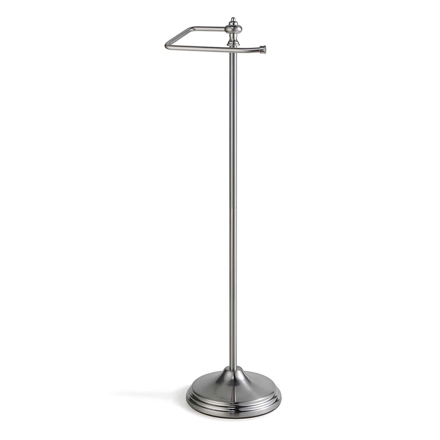 SunnyPoint Bathroom Free Standing Toilet Tissue Paper Roll Holder Stand with Reserve Function, Satin Nickel