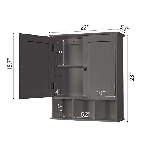 TaoHFE Grey Bathroom Cabinet,Bathroom Wall Cabinet with 2 Door Adjustable Shelves,Over The Toilet Storage Cabinet,Gray Bathroom Cabinet Wall Mounted