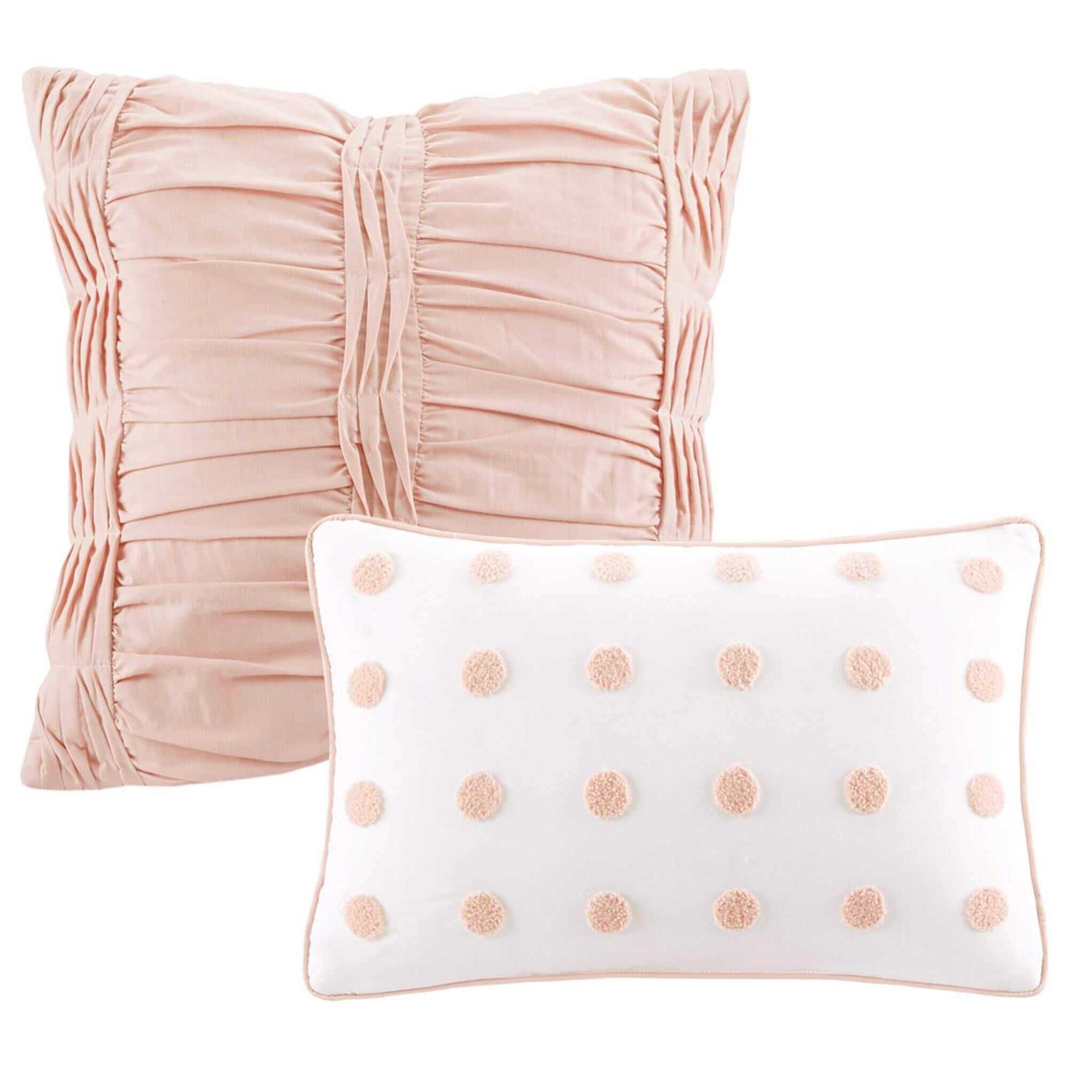 The Urban Habitat Brooklyn 5 Piece Duvet Cover set creates a charming space. Featuring small cotton tufts, the duvet cover and matching sham add texture to this solid bedding set. The reverse is a solid blush and one quilted euro sham adds texture. Two decorative pillows are also included in this duvet cover set. One pillow features a pleated design and the other is crafted to match the top of the bed. Made from 100% cotton for easy care.