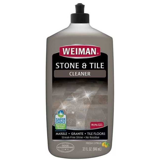 Enhance the natural beauty of stone surfaces in your home with Weiman Professional Stone & Tile Cleaner. This professional strength, non-toxic formula safely cleans any non-porous hard stone surfaces while helping to prevent stains from food, water and oil that reveals a truly brilliant streak-free shine. Weiman Professional Stone & Laminate Floor Cleaner is specially formulated to shine, brighten and protect natural sealed stone surfaces. Maximum protection recommended for all solid stone surfaces including granite, marble, quartz, onyx, travertine, limestone, sandstone, soapstone, slate, concrete, Saltillo, clay, stucco, & tile (including grouted tile). A natural cleaner engineered with a pH neutral specialized formula that instantly shines dull, faded stone flooring & removes water marks without leaving behind streaks or damaging the surface. This deep cleaner is made in the USA & helps effectively revitalize and maintain your surfaces to keep your stone floors shining brighter & longer. To enhance the brilliance of your stone surfaces, experience a whole new level of luster with the superior Weiman Professional Stone Cleaner. This product is made with a unique, non-acidic & “ready-to-use” formula that reveals the original brilliance of your natural stone surfaces & makes the Weiman Professional Stone & Tile Cleaner an essential for everyday treatment. Weiman wants each of the surfaces in your home to look its best. From stainless steel to leather to granite, each of our products is formulated specifically for one surface and one surface only; allowing you to achieve the perfect results that your home deserves. Weiman leaves a polishing shine and acts as a protector where other cleaners do not compare.