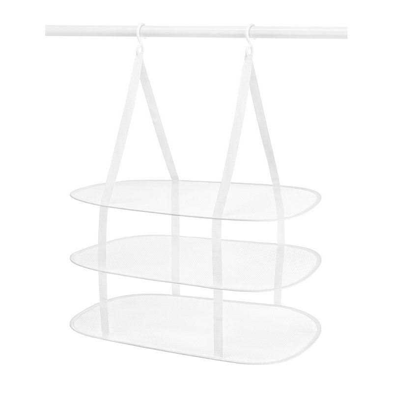 The Whitmor Pop & Fold clothes dryer hangs to maximize unused space and efficiently dries multiple sweaters or delicates at the same time. This sweater dryer hangs from a standard shower rod. Folds flat for easy storage when not in use. Whitmor is a 4th generation family-owned and operated business.