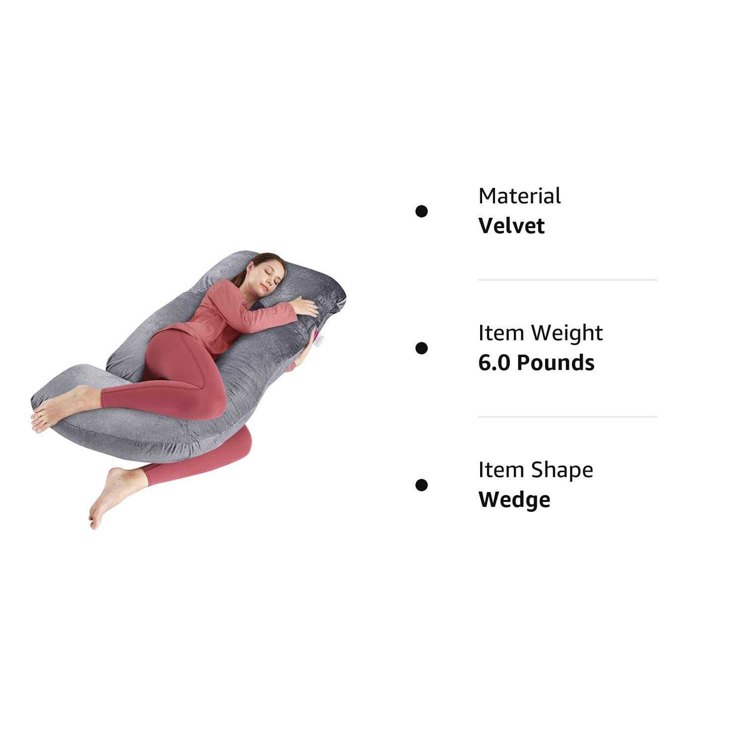 Pregnancy Pillow J Shaped Full Body Pillow with Velvet Cover, 60 inches Maternity Pillow for Pregnant Women Back, Legs and Belly Support Wndy’s Dream Color Grey Material Velvet Item Weight 6 Pounds Shape Wedge Cozy Materials – The maternity pillow elaborately crafts with the lofty polyester filling for optimum support and durability. Soft yet firm pillow provides adjustable comfort by reducing or adding filling inside. Ergonomic Designed – 60 x 28 x 8 inches. J shaped body pillow design replaces other small pillows in your bed. This J shaped body pillow following your body contour shaped that helping support your body such as back, belly, hips and knee. Relieve Pregnancy Body Pain – This pregnancy body pillow is designed for mom-to-be to relieve pregnancy discomfort. The J shape softly supports and molds to pregnant women’s belly and back, yet provides the support for hips and legs to take the pregnancy pressure off. Full Body Support – Th