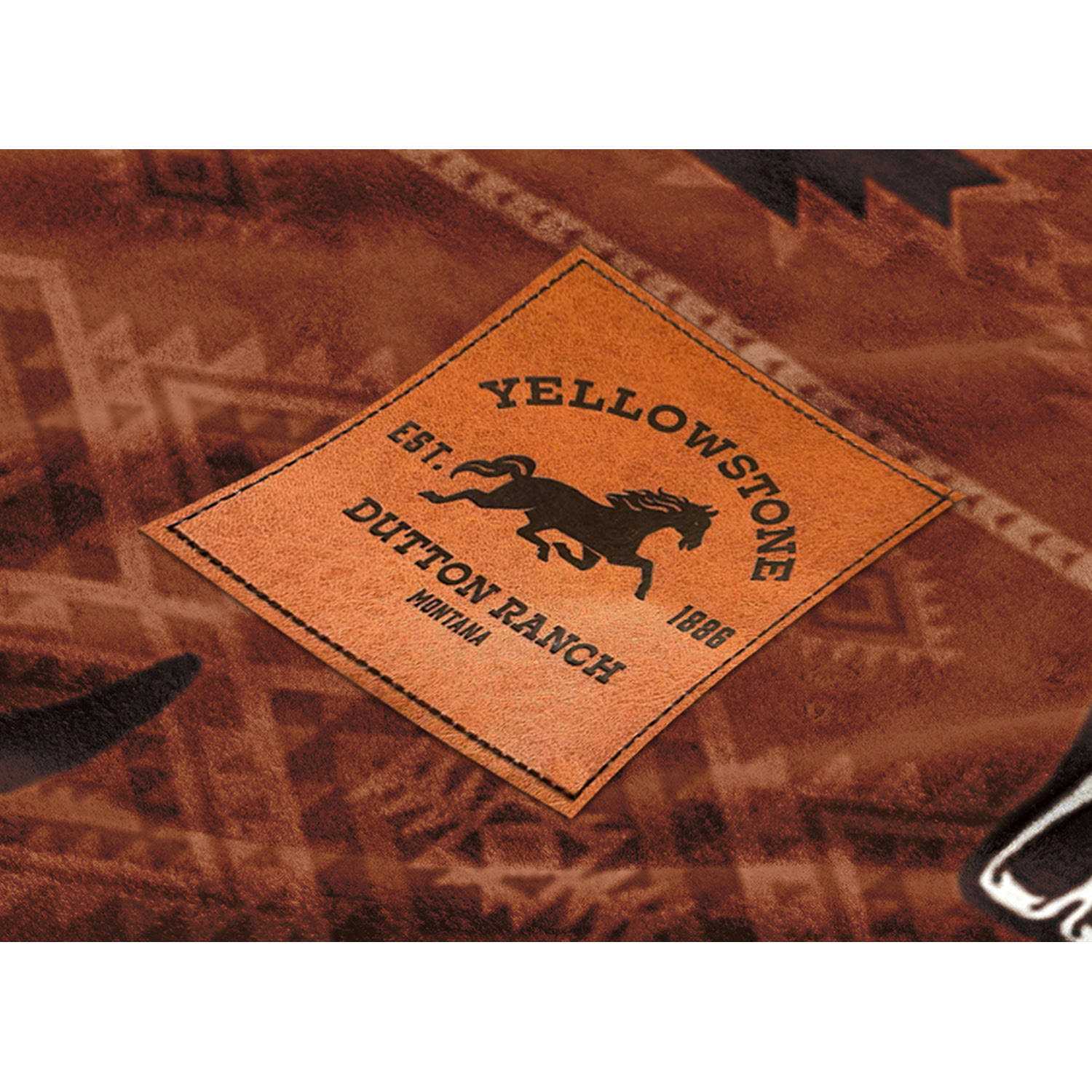 Now you can bring home a piece of the Dutton Ranch from the hit Paramount series Yellowstone. This Paramount Yellowstone Silk Touch Sherpa Reverse Throw is the perfect accessory for your home, office or on the go. – The design features a colorful and decorative southwestern pattern in white, tans, and tonal browns with a Yellowstone branded white cow skull. The front side features a faux leather Yellowstone branded patch in the corner, adding an extra special touch. The backing is made with sherpa material for warmth and plushness. This large 60′ x 70′ throw blanket is the ideal accessory for any Paramount Yellowstone fans who want to be warm and cozy while watching episodes or sitting around the fire. – Crafted for comfort and designed with the true fan in mind, this cuddle-approved throw was made for snuggling up. This blanket will keep you cozy from the Saturday night streaming session to those lazy Sunday afternoons spent with a cup of tea and a good book. Easy Care – Made of high-quality microfiber polyester fabric, this throw offers a gentle soft and warm feel that is lightweight, breathable and durable–making it suitable for all seasons. The 100% polyester throw blanket is machine washable and easy to care for. The quality material is shrink resistant, anti-fade, anti-pilling and does not shed. – To care for this throw, machine wash it in cold, separately, using delicate cycle and mild detergent. Do not bleach. Machine dry separately on gentle cycle. Remove promptly. Do not iron.