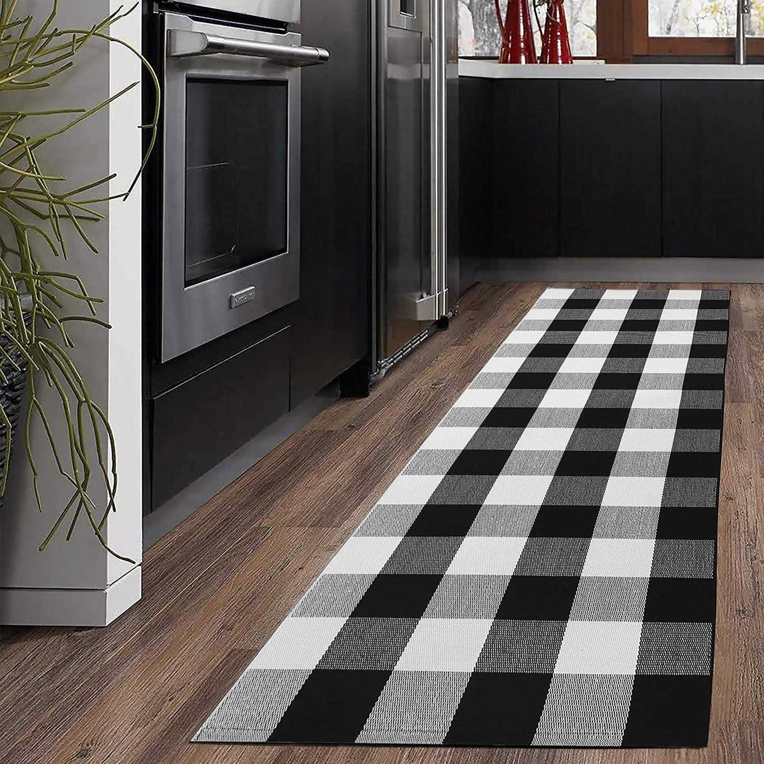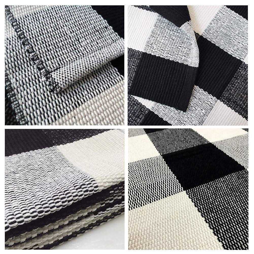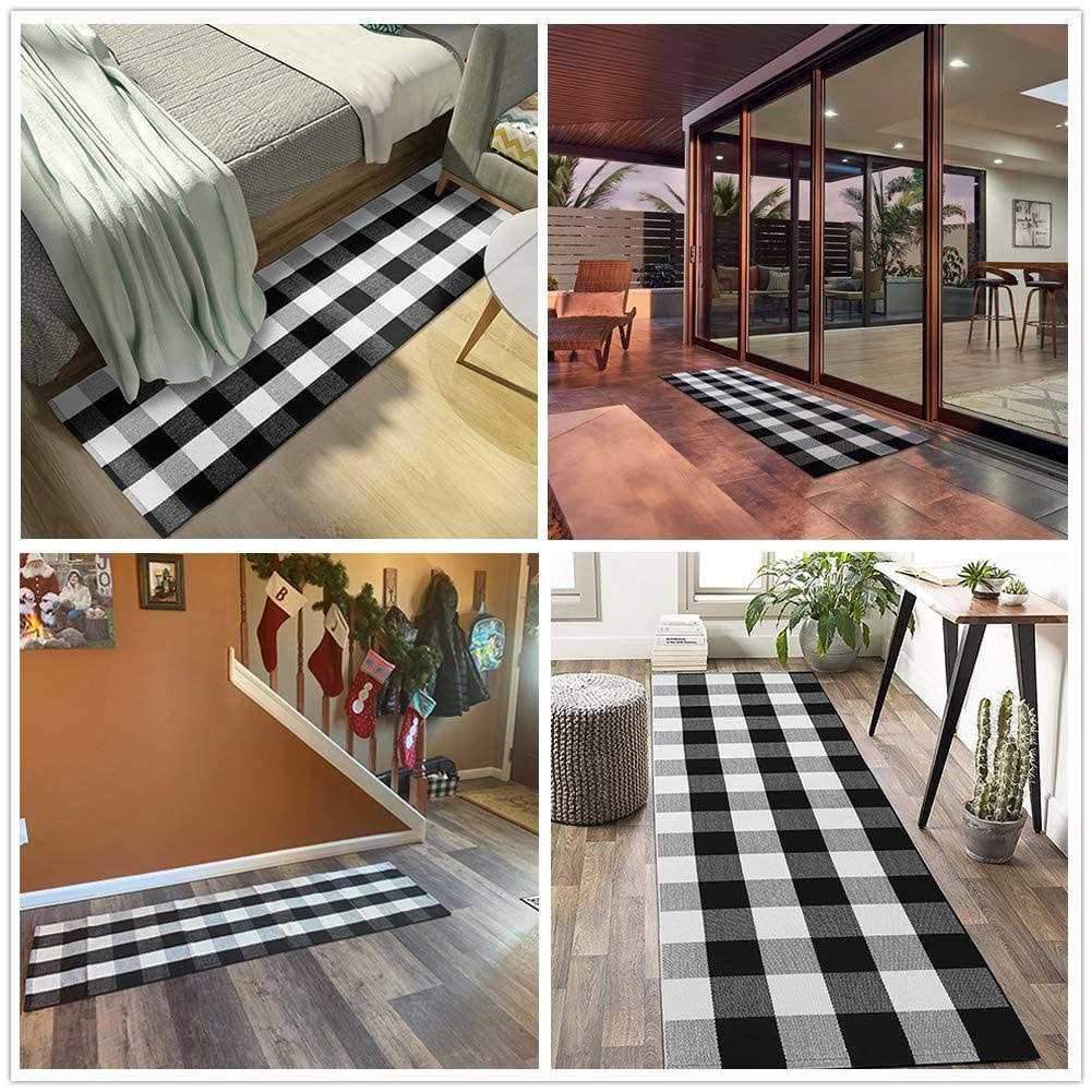 Kahouen Buffalo Check Runner Rug,Hand-Woven Buffalo Plaid Runner Rugs, Black and White Checkered Outdoor Rugs for Kitchen/Living