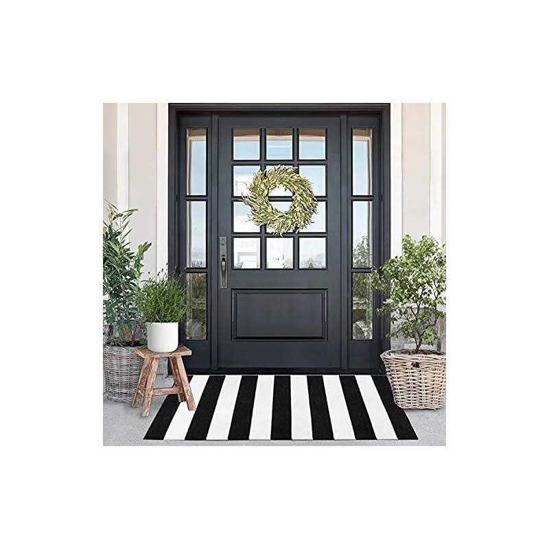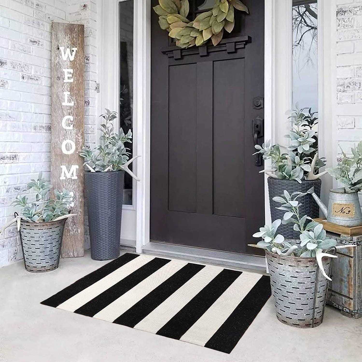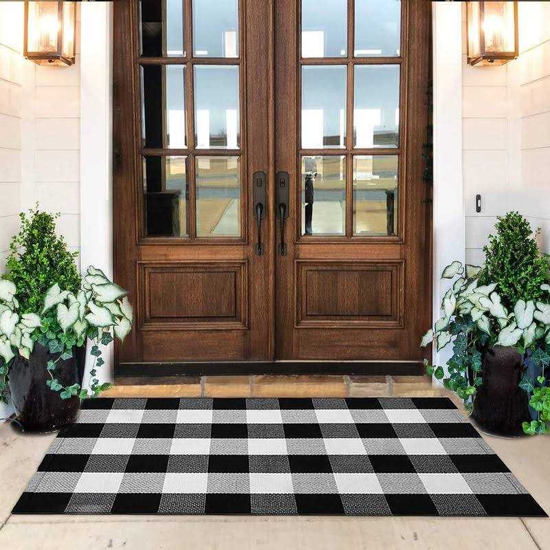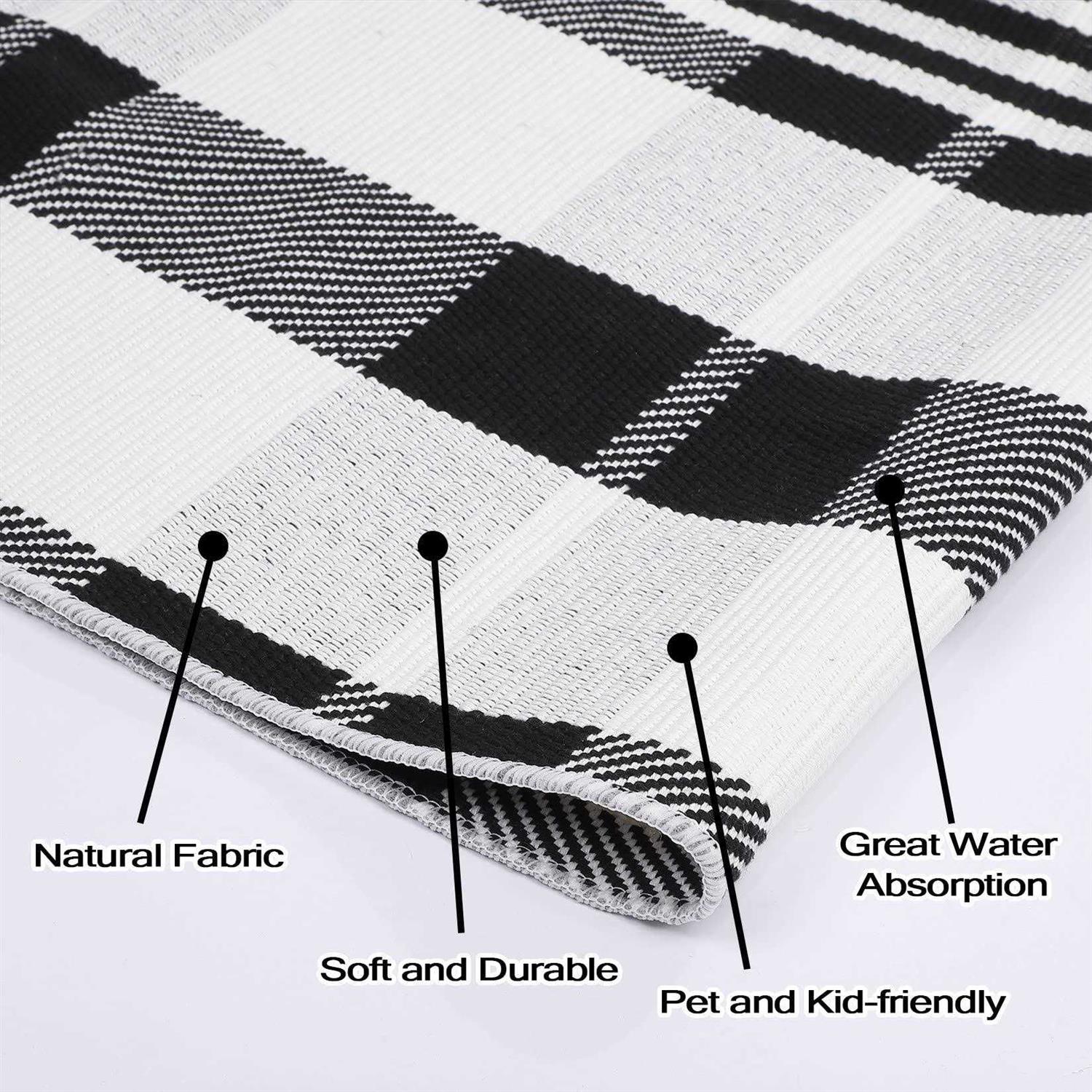 Kahouen Buffalo Check Runner Rug,Hand-Woven Buffalo Plaid Runner Rugs, Black and White Checkered Outdoor Rugs for Kitchen/Living