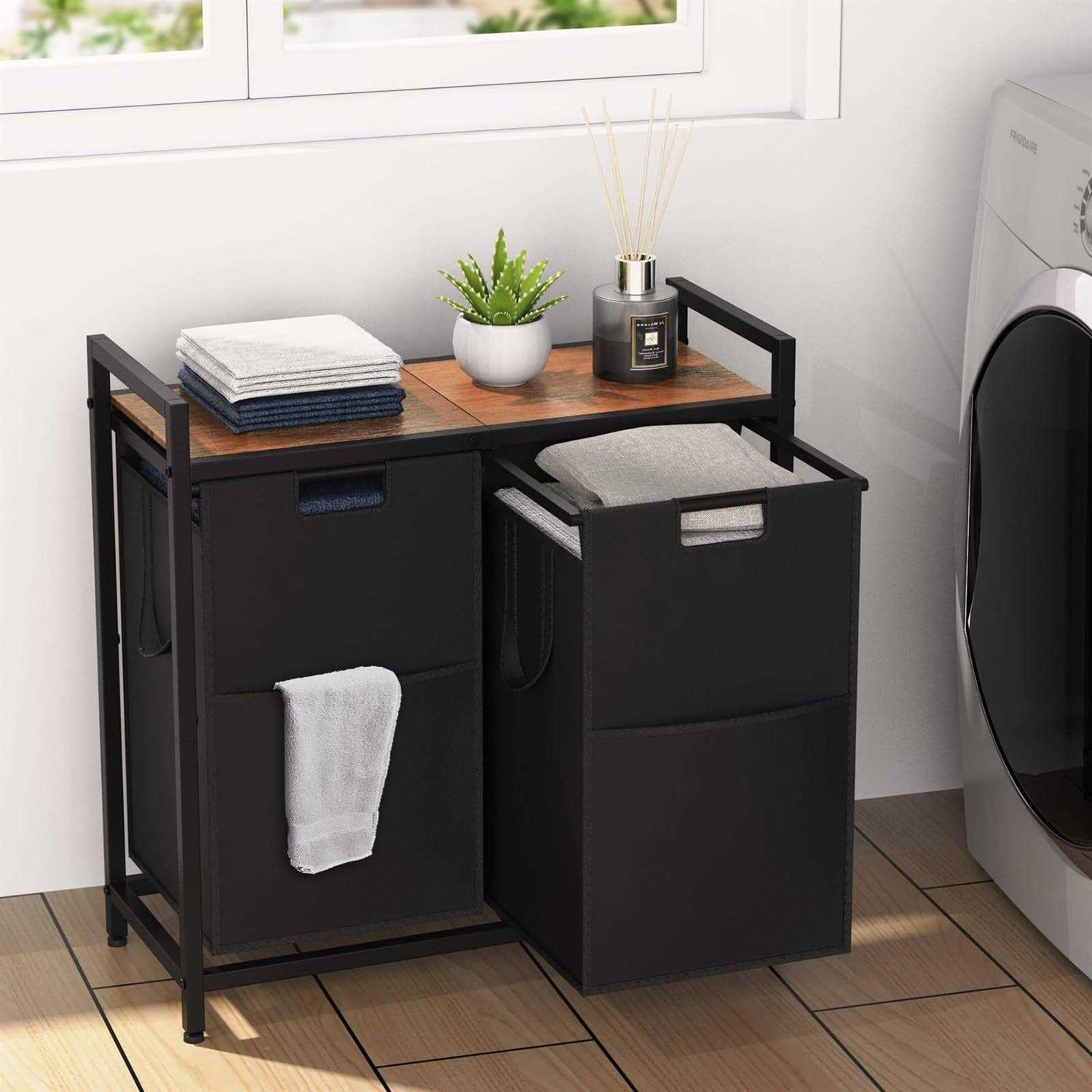 Kalzie Laundry Hamper 2 Section Laundry Basket Organizer with 2 Removable Laundry Sorter Bags
