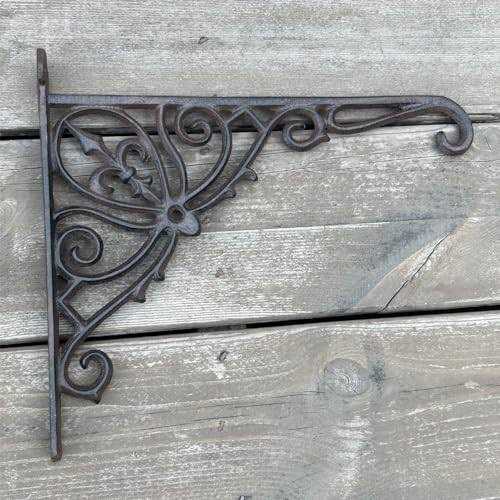 KiaoTime Cast Iron Hanging Hook Bracket Wall Hanger 12 Deep Outdoor Indoor Durable Wall Hanging Bracket Hooks for Pots Basket Bird Feeder Wind Chime Lanterms